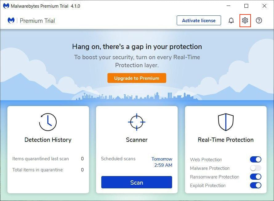 1. Open Malwarebytes app and press in the upper right corner.