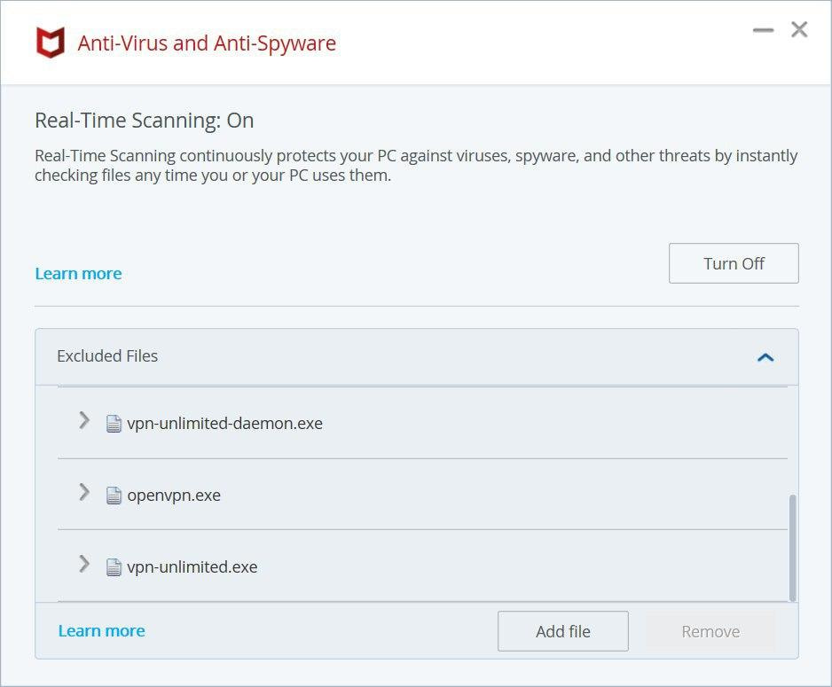 How to add VPN Unlimited to McAfee exclusions