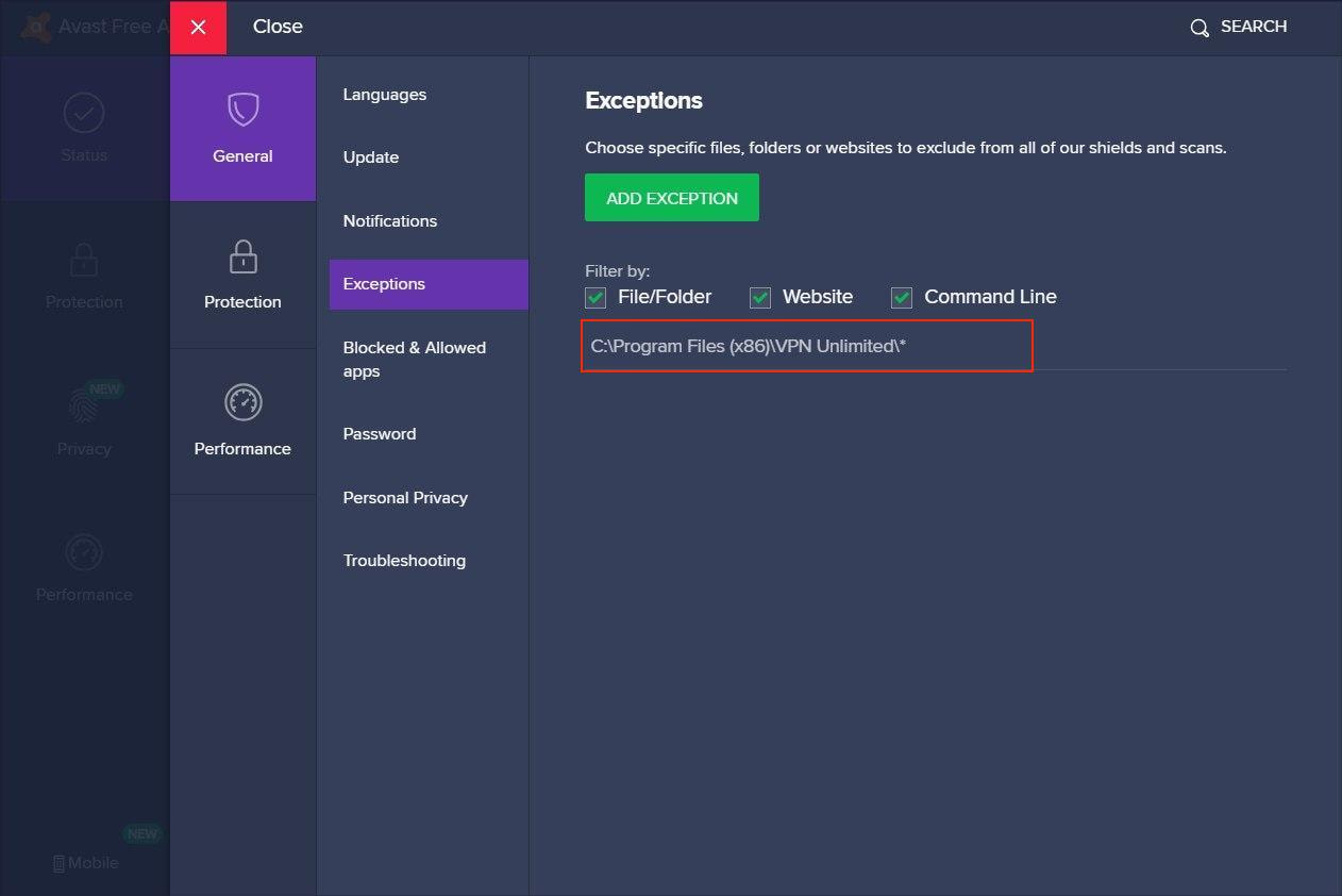 How to add VPN Unlimited to Avast exclusions