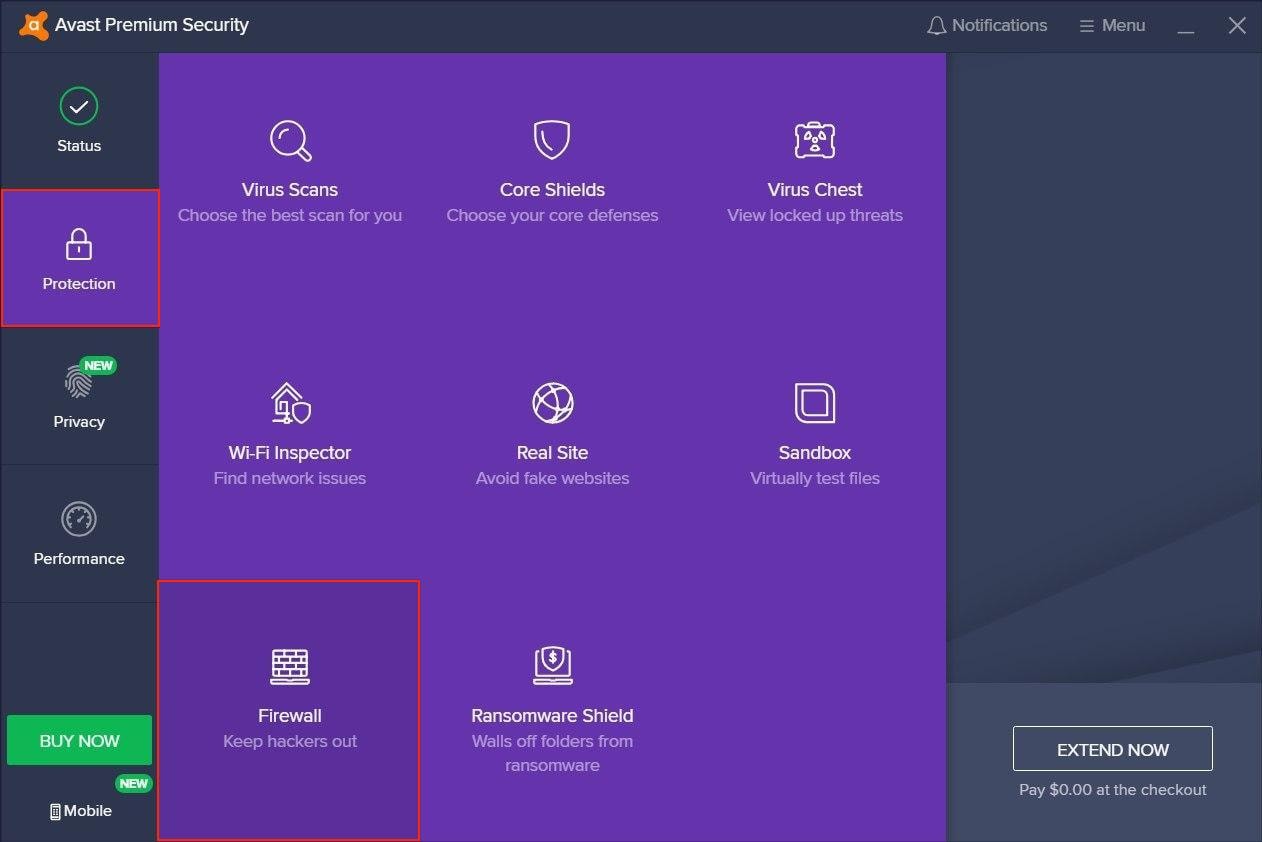 Once completed, proceed to Avast Firewall Settings: