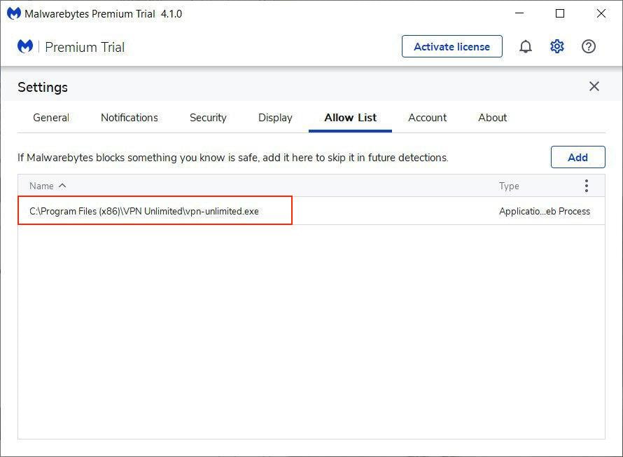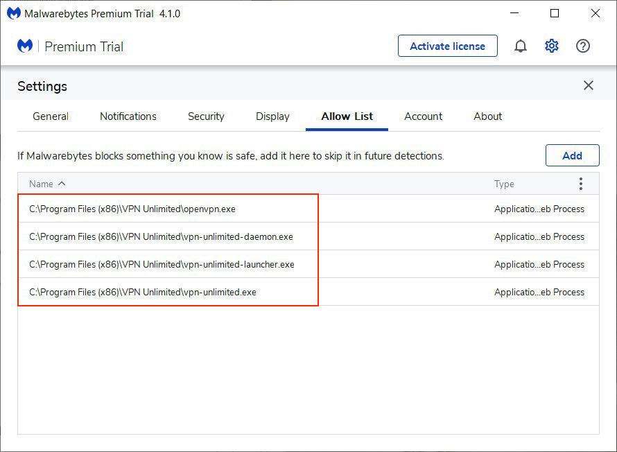 How to add VPN Unlimited to Trusted in Malwarebytes settings