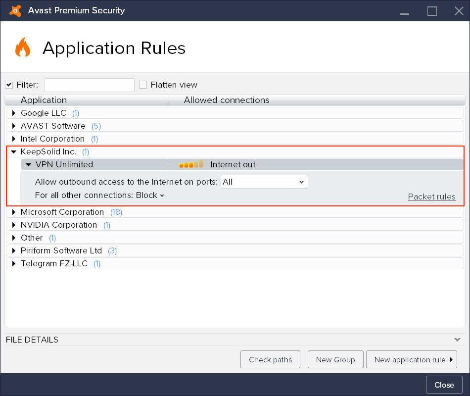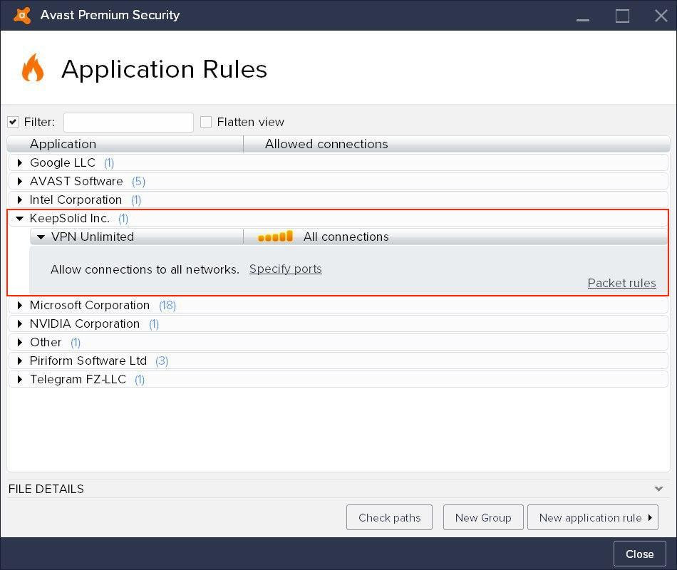 That’s it. You’ve successfully added VPN Unlimited to trusted services in your Avast Antivirus settings.